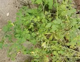 茎直立,基部粗达1厘米,具棱,通常自下部分枝。基生叶少数,具长柄,叶片轮廓三角形或宽卵形,长4-9(-13)厘米,宽2-6(-9)厘米,二至三回羽状分裂,第一回全裂片具长1-2.5厘米的柄,第二回具2-5毫米的柄,2-3深裂或浅裂,小裂片倒卵形、菱状倒卵形或卵形,先端圆或钝,具尖头,背面具白粉;茎生叶多数,下部者具长柄,上部者具短柄,其他与基生叶相同。