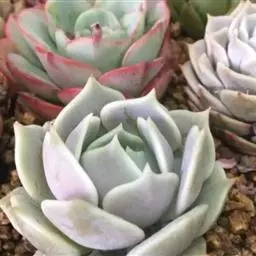 吉娃莲,景天科拟石莲花属,别名:吉娃娃,吉娃莲,植株小型,无茎的莲座叶盘非常紧凑。卵形叶较厚,带小尖,…