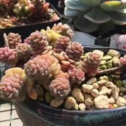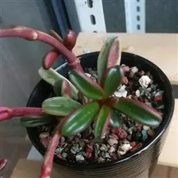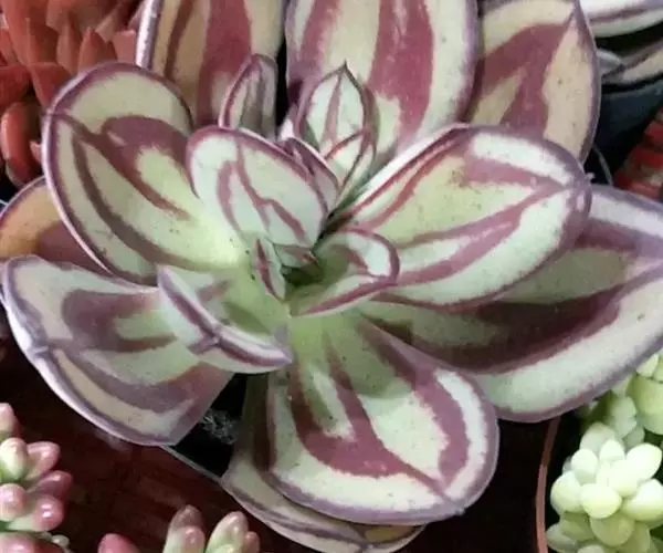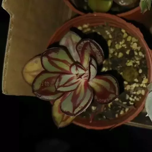 红司,多肉植物(肉质草本植物),景天科,拟石莲花属。有着非常特别的红色花纹叶片,且叶片边缘也呈现红色,叶片背部有红色花纹或片状红色斑点,植株茎干有很多不规则棱角。光照不足的情况下,叶片会逐渐变绿色,但少有植株全绿。