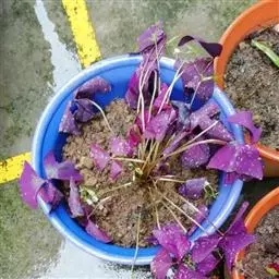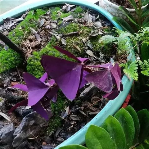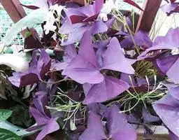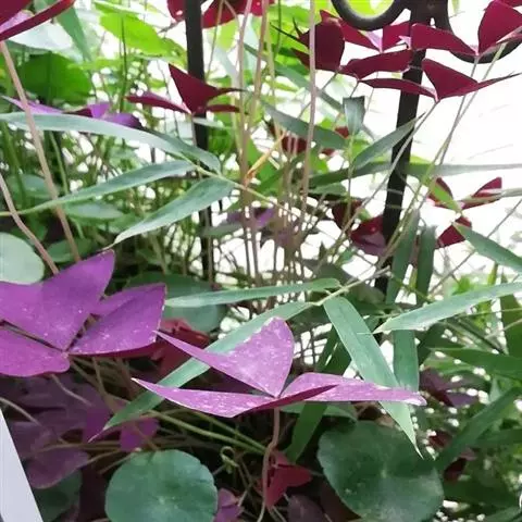 多年生草本,地下块茎粗大。叶丛生,具长柄,掌状复叶,小叶 3枚,无柄,倒三角形,深紫色。紫叶酢浆草…