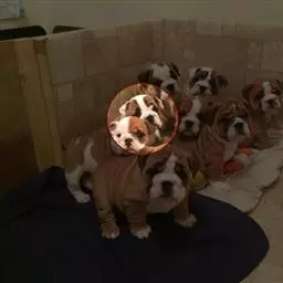 头部具有显著特点:特别大,比例匀称且头顶特别宽。表情:坚定、敏锐而专注。眼睛:中等大小、分的较开,略微倾斜。圆形,既不突出也不凹陷。黑色或不同色调的褐色,颜色越深越好。眼眶色素充足,黑色、黑白两色或白色的狗,眼眶为黑色;褐色狗的眼眶为褐色。瞬膜颜色深,不外露。耳朵:位于眼睛之上,耳廓为心形且薄,除了后面略微张开外,其它部分都贴着头部。耳朵不能延伸到下颚。脑袋:从轮廓上看,比口吻略长,后半部比前半部弯曲的厉害。正面观察时,脑袋非常宽而且呈半球形,中间略凹。前额突出,中间有皱纹,从止部向后枕骨延伸,长度约2/3。后枕骨非常清晰。止部:非常清晰。口吻:坚固,根部比鼻镜端宽。颚部:结实,无上颚突出或下颚突出。鼻镜:宽,鼻孔宽阔。色素充足,黑色、黑白两色或白色的狗,鼻镜为黑色;褐色狗的鼻镜为不同色调的褐色。嘴唇:厚实,尤其是前部,无飘唇。嘴唇及口腔黏膜,如上颚、舌下、牙龈等地方的颜色:黑色、黑白两色或白色的狗,为彻底的黑色或大部分为黑色;褐色狗的为不同色调的褐色。咬和:剪状咬和或钳状咬和。牙齿:当嘴唇闭合时,看不见牙齿。犬齿结实