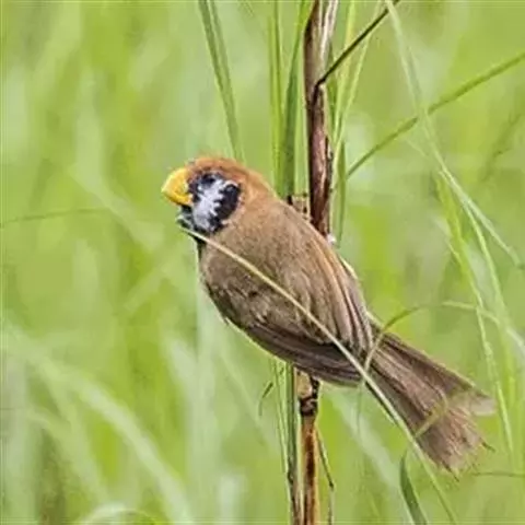 文须雀,别称髭雀、文须山雀,属雀形目、鹆鸟科、画眉亚科。眼先及髭纹黑色,头顶暗灰,…