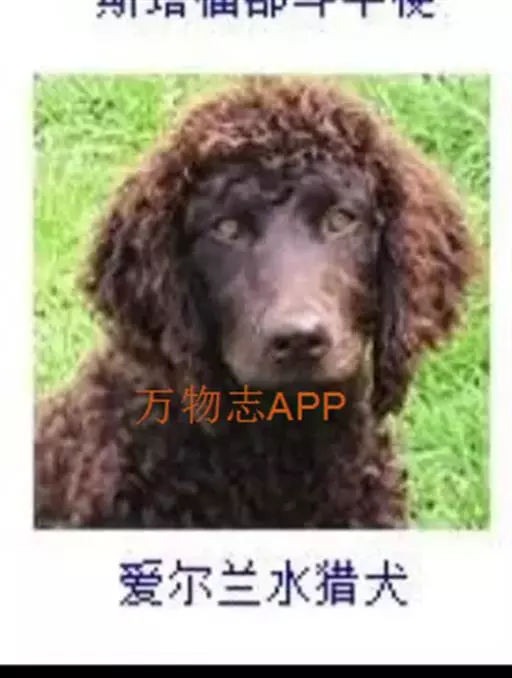 爱尔兰水猎犬 头部:大而长,有长卷毛。