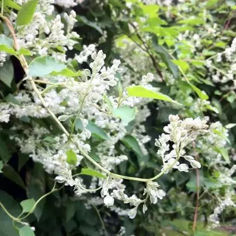 花:花序圆锥状,顶生或腋生,长10-20厘米,分枝开展,具细纵棱,沿 何首乌图 棱密被小突起;苞片三角状卵形,具小突起,顶端尖,每苞内具2-4花;花梗细弱,长2-3毫米,下部具关节,果时延长;花被5,深裂,白色或淡绿色,花被片椭圆形,大小不相等,外面3片较大背部具翅,果时增大,花被果时外形近圆形,直径6-7毫米;雄蕊8,花丝下部较宽;花柱3,极短,柱头头状。