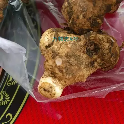 块根纺锤形或团块状,一般略弯曲。长5-15cm,直径4-10cm。表 面红棕色或红褐色,凹凸不平,有不规则的纵沟和致密皱纹,并有横长皮孔及细根痕。