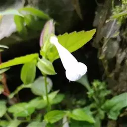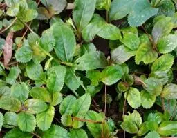 叶具长1-2厘米之柄,叶片长卵形或卵形,长3-5厘米,宽1.5-2.5厘米,几无毛,先端略尖或短渐尖,基部楔形,边缘具带短尖的粗锯齿。