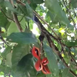 假苹婆(学名:Sterculia lanceolata Cav.)是梧桐科苹婆属植物,乔木,小枝幼时被毛。叶椭圆形、披针形或椭圆状披针形,顶端急尖,基部钝形或近圆形,上面无毛,下面几无毛;叶柄长2.5-3.5厘米。圆锥花序腋生,长4-10厘米,密集且多分枝;花淡红色,萼片5枚。蓇葖果鲜红色,长卵形或长椭圆形,顶端有喙,基部渐狭,密被短柔毛;种子黑褐色,椭圆状卵形,直径约1厘米。每果有种子2-4个。花期4-6月。