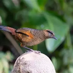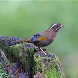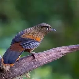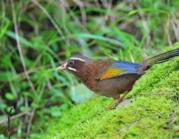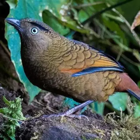 蓝翅噪鹛:噪鹛科、彩翼噪鹛属动物。中型鸟类,体长22-25厘米。上体棕橄榄褐色密被黑色鳞状斑,…