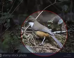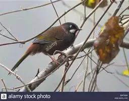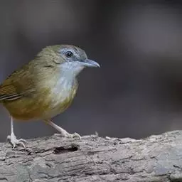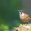 白腹幽鹛,体小(14厘米)的暖褐色鹛。全长约150毫米。上体橄榄褐色;眼先污褐灰;颏、喉白色,具黑色矢形斑;胸具淡棕橄榄色宽阔带斑;腹部中央白色。与棕胸雅鹛及雀鹛的区别在尾短而较圆。虹膜-红褐;嘴-带黑;脚-肉褐色。常栖息于海拔1000-1500米的山林间,并随着季节而垂直迁徙,夏季至高山,冬季至平原,常栖于竹林、灌丛。分布于云南西部(留鸟) 。