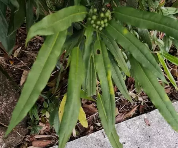 变叶树参 直立灌木,高2-3米。叶片革质、纸质或薄纸质,无腺点,叶形变异很大,不分裂叶片椭圆形、卵状椭圆形、椭圆状披针形、长圆状披针形以至线状披针形或狭披针形,长2.5-12厘米,有时更大,宽1-7厘米,先端渐尖或长渐尖,稀急尖,基部楔形或阔楔形,有时钝形,分裂叶片倒三角形,掌状2-3深裂,两面均无毛,边缘近先端处有细齿2-3个,有时中部以上全部有细齿,全缘的较少,基脉三出,有时不明显,中脉隆起,侧脉5-9对,稀多至15对以上,上面微隆起,下面稍明显至明显,网脉不明显;叶柄长0.5-5厘米,无毛。伞形花序单生或2-3个聚生,有花十数朵至数十朵或更多;总花梗粗壮,长0.5-2厘米;花梗长0.5-1.5厘米;花一般长3毫米,充分发育的可达5毫米以上;萼长约2毫米,边缘有4-5个小齿;花瓣4-5,卵状三角形,长1.5-2毫米;雄蕊与花瓣同数,花丝甚短;子房4-5室;花柱合生成短柱状,长不及1毫米。果实球形,平滑,直径5-6毫米,宿存花柱长1-1.5毫米。花期8-9月,果期9-10月。