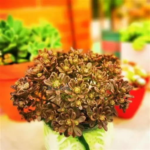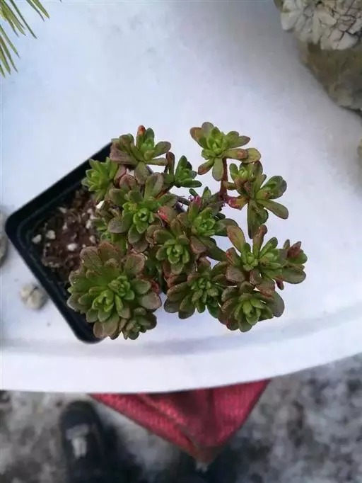 株型迷你,多分枝。小人祭细小卵状的叶片排列成莲花状,叶片有粘性,叶片绿色中间带紫红纹,叶缘也有红边,充分光照下,叶片颜色会变色,紫红色纹理也愈发明显,叶片颜色多变,非常迷人。小人祭春季开花,总状花序,小花黄色。