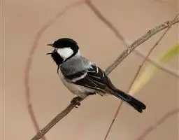 褐头山雀:共有14个亚种,是一种小型的山雀。头顶及颏褐黑,上体褐灰,颊白,颏和喉黑色,下体近白,…