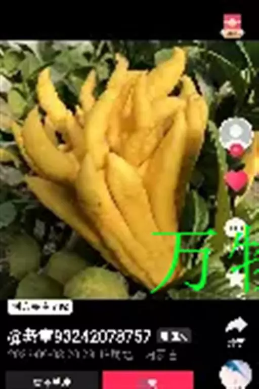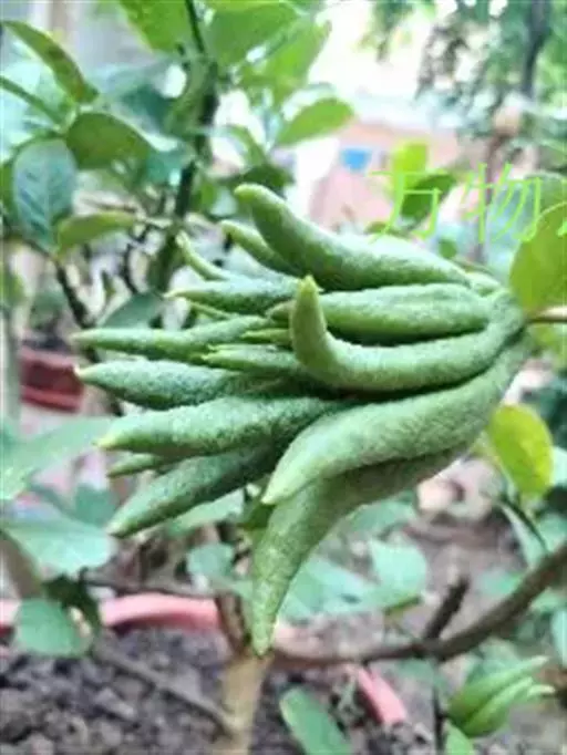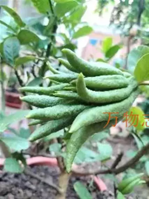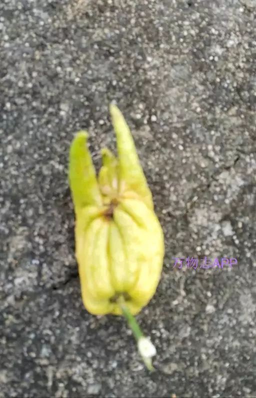柑果卵形或矩圆形,长10~25厘米,顶端分裂如拳,或张开如指,外皮鲜黄色,有乳状突起,无肉瓤与种子。