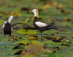 凤头麦鸡:中型涉禽,体长29-34厘米。头顶具细长而稍向前弯的黑色冠羽,像突出于头顶的角,甚为醒目。…