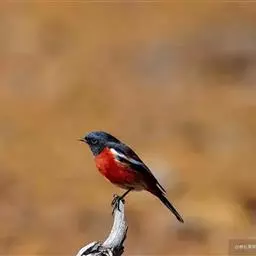 白喉红尾鸲,小型鸟类,体长14-16厘米。雄鸟额至枕钴蓝色,头侧、背、两翅和尾黑色,翅上有一大形白斑,…