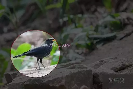 紫啸鸫全身羽毛呈黑暗的蓝紫色,各羽先端具亮紫色的滴状斑,嘴、脚为黑色。此鸟远观呈黑色,近看为紫色,栖息于多石的山间溪流的岩石上,往往成对活动,常在灌木丛中互相追逐,边飞边鸣,声音洪亮短促犹如钢琴声。在地面上或浅水间觅食,以昆虫和小蟹为食,兼吃浆果及其他植物。繁殖于4-6月,巢筑在岩隙间、树叉或山上庙宇的横梁上。巢呈杯状,以苔藓、须根、残叶等构成。每窝产4枚卵,纯绿色,或黄绿色,具深浅不一的红色细斑。分布于中亚、阿富汗、巴基斯坦、印度以至东南亚、南达爪哇以及中国。