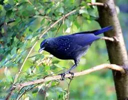 紫啸鸫(学名:Myophonus caeruleus)是鹟科啸鸫属的鸟类,俗称鸣鸡、乌精。全身羽毛呈黑暗的蓝紫色,各羽先端具亮紫色的滴状斑,嘴、脚为黑色,不同亚种嘴部颜色或为黄色。此鸟远观呈黑色,近看为紫色,栖息于多石的山间溪流的岩石上,往往成对活动,常在灌木丛中互相追逐,边飞边鸣,声音宏亮短促犹如钢琴声。紫啸鸫在地面上或浅水间觅食,以昆虫和小蟹为食,兼吃浆果及其他植物,在山地主要吃昆虫,对山林有益。遍布于我国东部,见于河北、陕西、甘肃以南地区。和台湾特有鸟类台湾紫啸鸫外形十分相似。