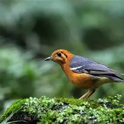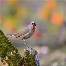 赭红尾鸲:小型鸟类,体长13-16厘米。雄鸟前额、头侧、颈侧、颏至胸概黑色,头顶和背灰色或黑色,…
