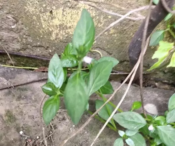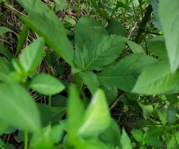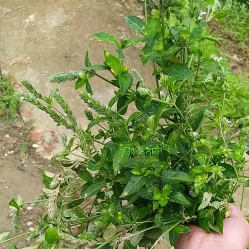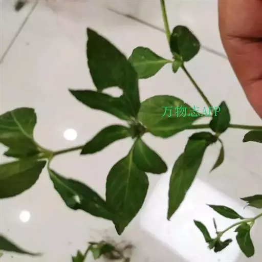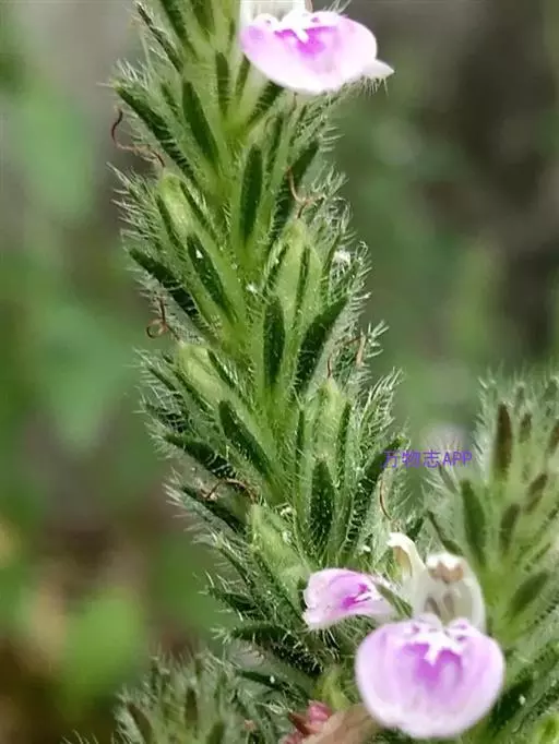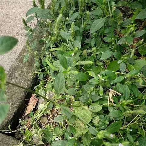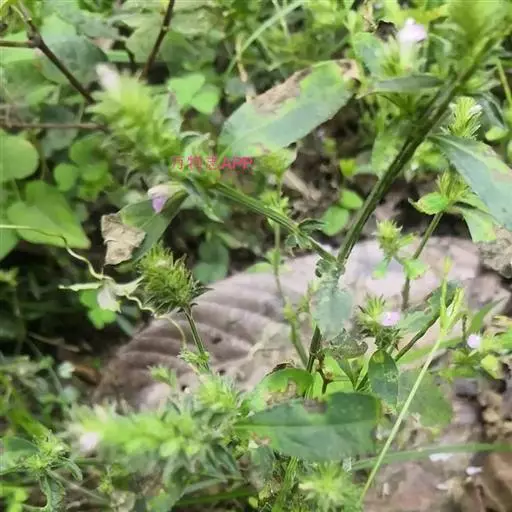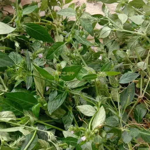 全草长10~60cm。根细而弯曲。茎具纵棱,直径2~4mm,基部节上常有不定根;表面黄绿色;被毛,节膨大成膝状;质脆,易折断,断面可见白色的髓。叶对生,具柄;叶片多皱缩,展平后呈卵形或狼状披针形,两面及叶缘有毛。穗状花序顶生或腋生、苞片及宿存花萼均被粗毛;偶见花冠,淡红色。蒴果棒状,长约6mm。种子4颗,黑褐色,扁三角形。气微,味淡。以茎叶色绿者为佳。