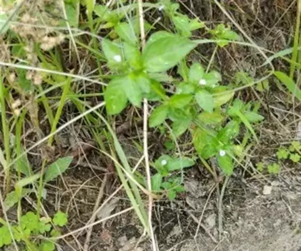 茎几铺散,上部上升,基部匍匐,节上生根,密被硬毛,茎上部节上叶对生,卵形或披针形或矩圆状披针形,全缘,长1-1.5厘米,宽0.5-1厘米,顶端钝或略尖,基部圆或极钝,两面密被硬毛。苞片和小苞片及萼片密被硬毛。产台湾澎湖。(据《台湾植物志》第二版,未见标本)。