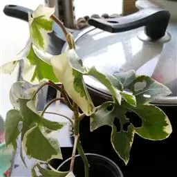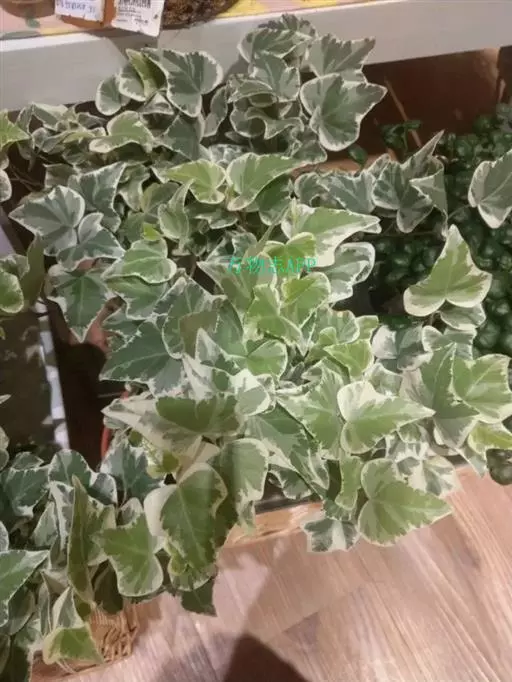 5、彩叶常春藤‘Discolor’叶较小,乳白色,带红晕。