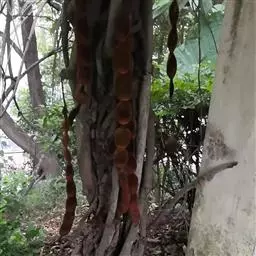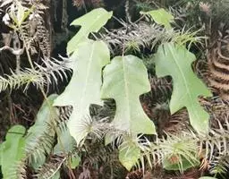 常绿藤木,借气生根攀援;幼枝具星状柔毛。单叶互生,全缘,营养枝上的叶3~5浅裂;花果枝上的叶不裂而为卵状菱形。伞形花序。果黑色,球形,浆果状;翌年4~5月果熟。