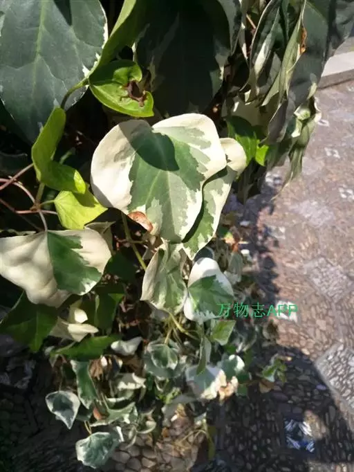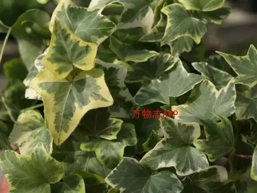 3、斑叶常春藤‘Argenteo-variegata’叶有白斑纹。