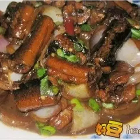 烤扁担肉 冬菜肉末 干煸鳝背 酱爆鸭块。