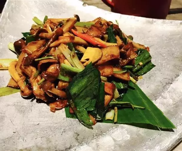 爆人参鸡片 双菇炖南蛇 蚝油生菜 黑鸡拆烩老猫公。