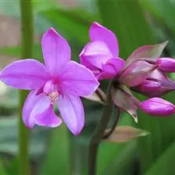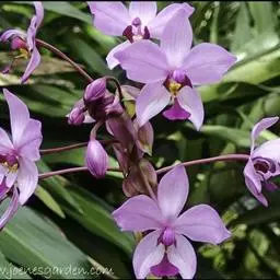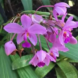 紫花苞舌兰:植株高达1米。假鳞茎卵状圆锥形,具3-5枚叶。叶质地薄,淡绿色,狭长,具折扇状的脉。…