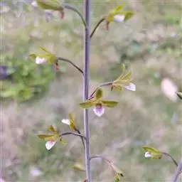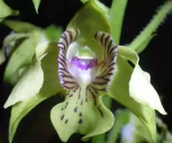 无距虾脊兰:假鳞茎近圆锥形,粗约1厘米,具3-4枚鞘和2-3枚叶。叶在花期尚未完全展开,…