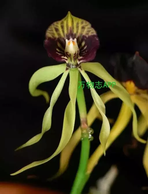 章鱼兰形如海贼王中海王类的小章鱼而得名,又因唇瓣宛若美丽的扇贝壳而称为扇贝兰。