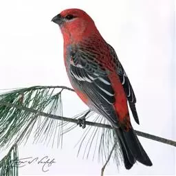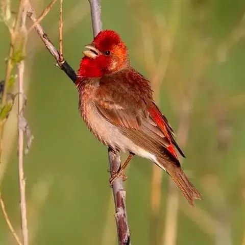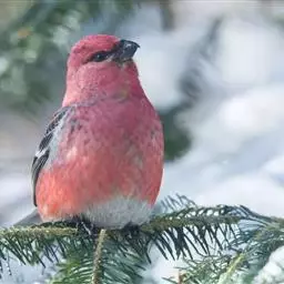 藏朱雀:全长约17-18厘米。雄鸟头部深红色具光辉,喉部暗红色具白色点斑;背部灰白色,各羽具玫瑰红…
