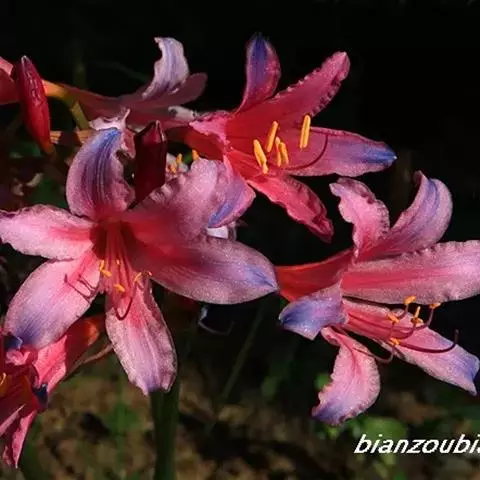 长筒石蒜草本,地生。鳞茎卵球形;叶披针形;伞形花序,有花5-7朵,花白色;花被裂片腹面稍有淡红色条纹,…