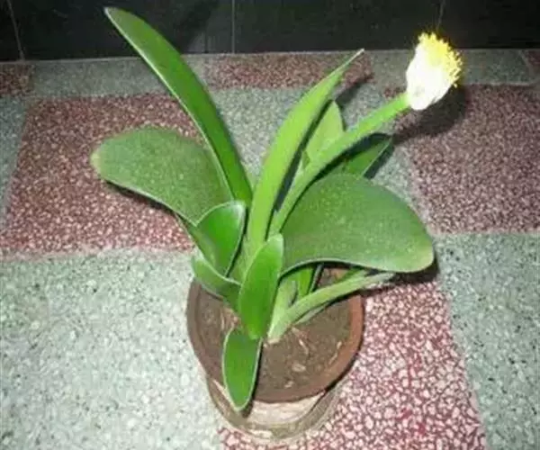 虎耳兰 多年生草本。鳞茎球形,直径4-7厘米。叶3-4枚;叶柄短,鞘状;叶片长圆形,长15-30厘米,主脉两侧各有纵脉6-8条,横行细脉排列较密而偏斜。花茎直立,实心,稍扁平,高30-90厘米,先叶抽出,淡绿色或有红斑;伞形花序具多花,排列稠密,直径7-15厘米,下有佛焰苞状总苞1轮,总苞片3-多枚;花白色。