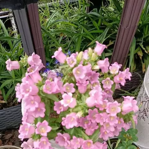 丛生风铃草(学名:Campanula carpatica Jacq.):植株高20-40厘米。基生叶圆心形,叶片上部较窄成圆卵形;花朵单生,有较长的花梗;花萼裂片钻形;花冠宽钟状,白色,蓝色,粉红色或紫色。花期3-8月。