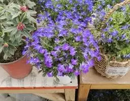 当幼苗长出5~6片真叶时可移栽上盆,用口径为9~11cm的花盆进行移植。移植一般在阴天或下午4点以后,种植时不要太深。种后需马上浇足定根水,使小苗与基质充分接触,如阳光太强,需用遮阳网适当遮盖3~4天。风铃草早期生长较为零乱,但在后期生长中植株会自然整齐紧凑。风铃草在生长过程中可不摘心,也可作摘心处理。如需摘心,可在幼苗长至6~8cm 左右时进行,以缩短植株高度,增加侧枝及花朵数量。浇水时要做到适时适量,根据盆内基质干湿度情况和天气的变化进行。浇水时盆土要见干见湿,浇则浇透,但不要使盆内积水。阴雨天要少浇或不浇,气温高、蒸发量大时要多浇,反之则少浇。植株需肥量中等。种后每周交替施用浓度为150~ 200ppm 的氮肥和钾平衡肥,应避免铵和氮的含量过高。生长旺盛期每15~20天施一次稀薄腐熟饼液肥或人粪液肥。花前增施含磷、钾的复合肥,可防止花期倒伏,冬季和盛夏则应停止施肥。风铃草喜长日照,每天14小时光照可以自然开花。风铃草在阳光充足条件下,植株生长整齐,高度一致,开花整齐,花色鲜艳。半阴条件下,植株生长偏高、花序伸长、花色较淡。冬季无霜的条件下,室内或室外温度可保持在3℃~5℃ 。室外栽培需覆盖,3℃ 以下生长缓慢。