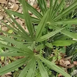 细叶棕竹,灌木,茎细如竹,多数聚生,有网状叶鞘。叶半圆形,掌状深裂,裂片狭长,阔线形,软垂,裂片7…