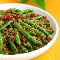 榄菜四季豆是以牛肉馅、四季豆为主料,盐、洋葱为配料制作而成的菜品。