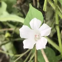 性状鉴别:田旋花皱缩卷曲成团状,根茎细长,具段根。茎细圆柱形,具棱角及条纹,上部被疏毛。叶到生,多卷曲呀脱落,完整者展平后呈三角状卵形,狼状长圆形或狭披针形,长2.8~7厘米,宽0.4~3厘米,先端钝圆,具小尖头,基部戟形、心形或箭形,全缘;叶柄长1~2毫米。花序腋生,花1~3朵;花冠宽漏斗状,白色或粉红色,花梗细弱,长3~8厘米。蒴果球形。种子4颗,黑褐色。气微,味咸。