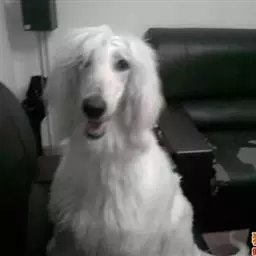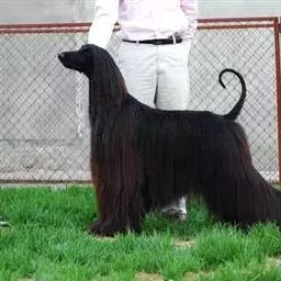阿富汗猎犬全身披丝绢状的长毛,毛色鲜艳,呈多种颜色,背中线附近毛短,…