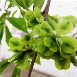 翅果椭圆形或宽椭圆形,长13-16毫米,两面无毛而边缘具睫毛,顶端缺口不封闭或微封闭,缺口内缘柱头面有毛,果核部分位于翅果近中部,上端接近或不接近缺口,果梗长5-15毫米。花果期3-4月。