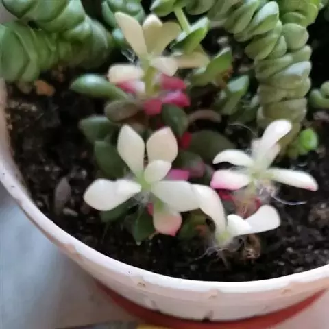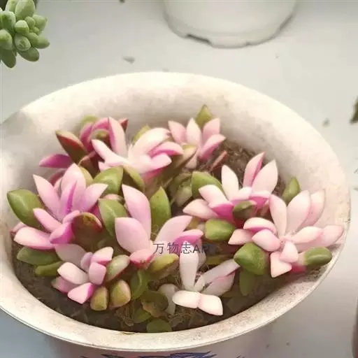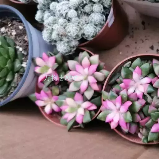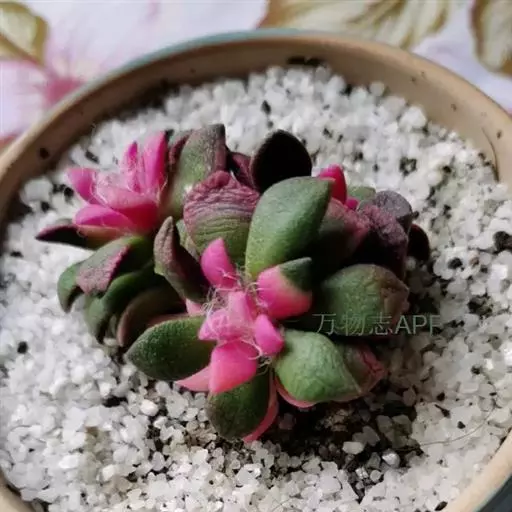 吹雪之松锦原产纳米比亚,是一种变异带有白色锦斑的多肉植物。马齿苋科、回欢草属多肉植物(多浆植物),别称回欢草,顶端叶片似莲花展开,叶面厚实,五彩雍华,喜阳(全日照),但忌长时间放在烈日下。株高仅5厘米,叶色倒卵形,叶腋间有白色丝状毛,开玫瑰色小花。
