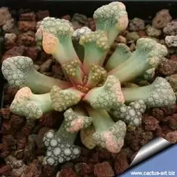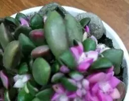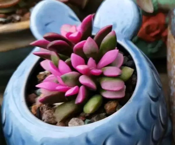 变异品种叶上有橘红色斑块,更具观赏性。是马齿苋科中唯一被作为多肉植物介绍的一类。夏季注意节水、通风。喜太阳、忌长时间放在烈日下。可放在窗前、阳台和其他散射光明亮处。冬夏休眠期应节水遮阳。