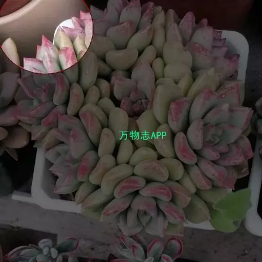 顶端叶片似莲花展开,叶面厚实,五彩雍华。
