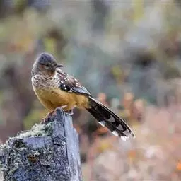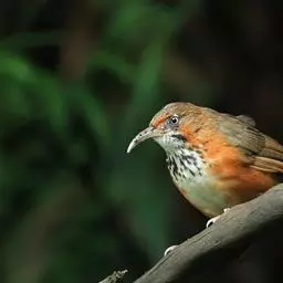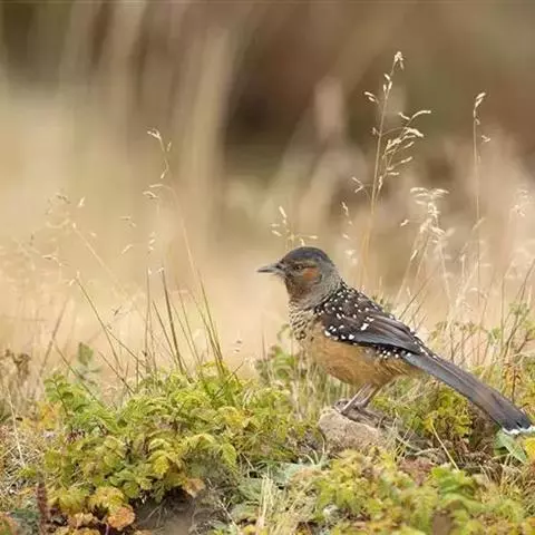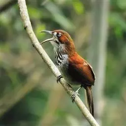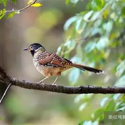 大噪鹛:中型鸟类,体长32-36厘米。额至头顶黑褐色,背栗褐色满杂以白色斑点,…