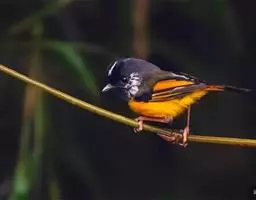 习性:留鸟。常单独或成对活动,有时也集成小群。在林下灌丛或竹丛间跳来跳去,边活动边发出“欺威激威-欺威-”的声音。 鸣声特别,甜美而含混的哨音joey joey dii-wiu,倒数第二声音最高。也有多种尖叫、成串的嘁喳声及颤鸣。