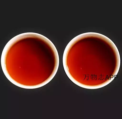 4、红褐:汤色红浓,红中透紫黑,匀而亮,有鲜活感。观察叶底,多呈褐色欠柔软,滋味较醇和。