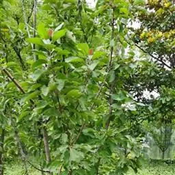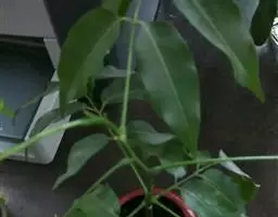 栗豆树 栗豆树的子叶———两个“元宝”,即种子的两个豆瓣,不像其它豆科植物在幼苗出土养分消耗后即萎缩消失,而是变为绿色继续进行光合作用,在幼苗期宿存于盆土表面长达一年。随着时间的延长,其子叶在完成一定的使命后,最终还是会发黑瘪掉。特别是在不良环境下,观赏时间会大大缩短。要延长两块元宝的观赏时间,宜将幼苗置放于湿凉半阴的条件下。栗豆树栽培一年后,子叶会渐渐萎缩干扁,属正常现象,这说明它正在长大,长大了的栗豆树会成为很好的室内常绿观叶植物。