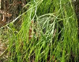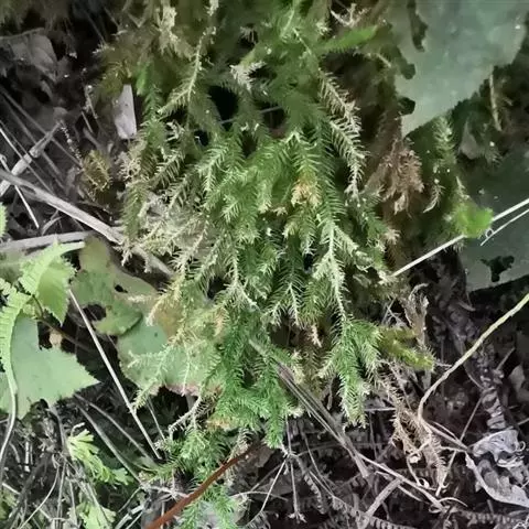 垂穗石松Palhinhaea cernua,多年生草本。须根白色,主茎直立,基部有次生匍匐茎,长30~50厘米或更长。叶稀疏,螺旋状排列,通常向下弯弓,侧枝上斜,多回不等位二叉分枝,有毛;分枝上的叶密生,线状钻形,长2~3毫米,全缘,通常向上弯曲。孢子囊穗单生于小枝顶端,矩圆形或圆柱形,长8~20毫米,淡黄色,常下垂;孢子叶覆瓦状排列,卵状菱形,先端渐尖,具不规则锯齿;孢子囊圆肾形,生于叶腋。孢子四面体球形,有网纹。生长于山溪边或林下荫湿石上。分布于江西、福建、华南地区、西南地区。垂穗石松的全草入药名为铺地蜈蚣 (《福建民间草药》)。